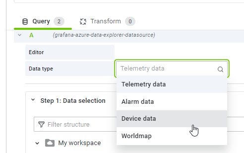 Choose Device data as your Data type – because I would like to collect the status of PFC Controller.