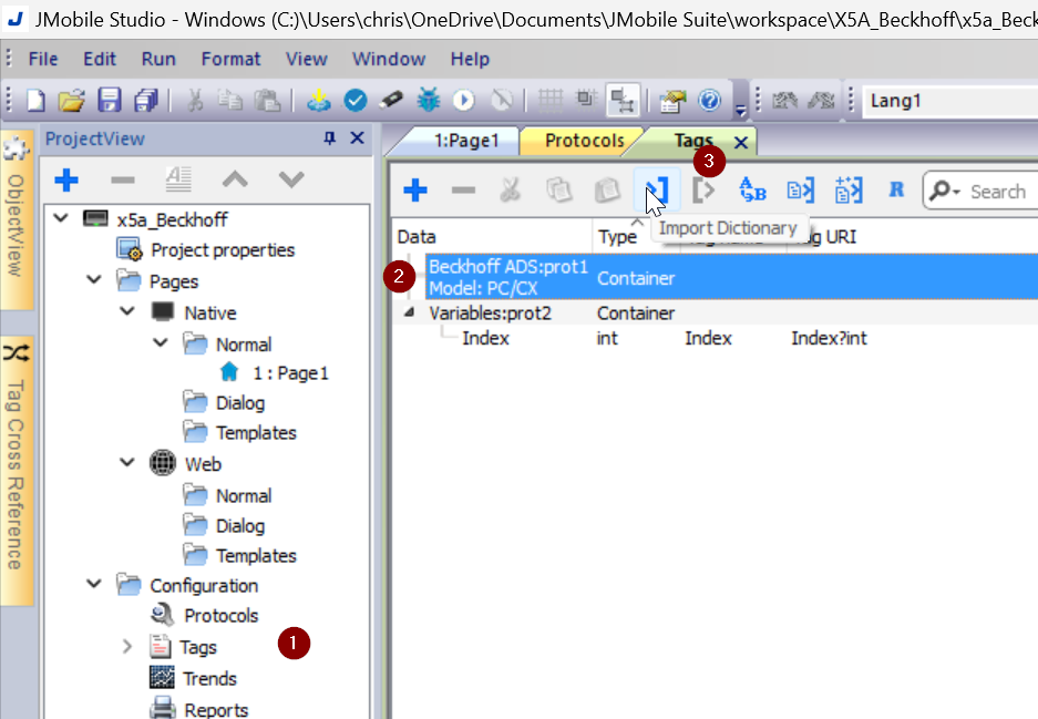 Go to Configuration>Tags>Select the Beckhoff Protocol you just added>Import Dictionary.