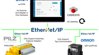 In this article, Pilz and OMRON PLCs are connected to different EXOR ex707M Ports, and Codesys is installed in the EXOR ex707M, with one communicating with OMRON on EthernetNet/IP Tag Link and the other on EthernetNet/IP Assemblies communication ,then EXOR will exchange the data taken from both as a Gateway. let’s get started. Reference Link Configuration This is actually the Hardware Configuration in this article. Implementation Pilz Side For detailed … Continue reading Codesys#Let’s Connect with OMRON via Ethernet/IP Tag Communication