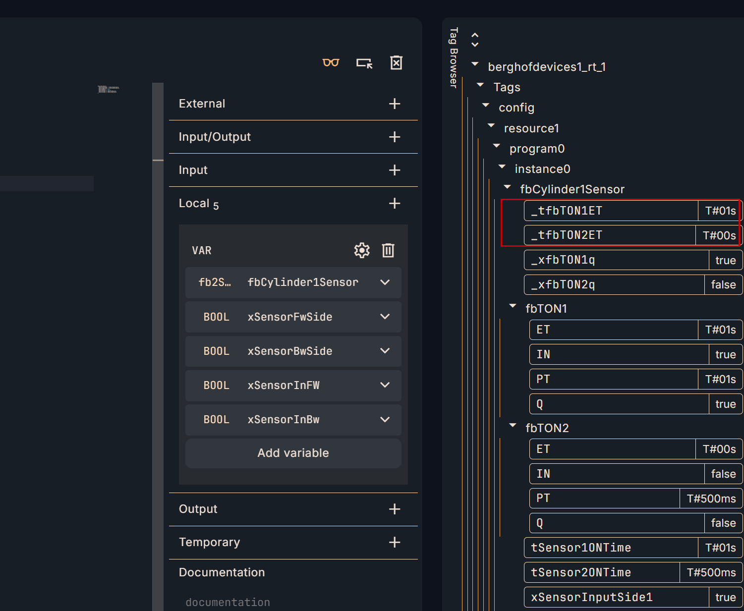 - _tfbTON1ET: Delay elapsed time of sensor 1