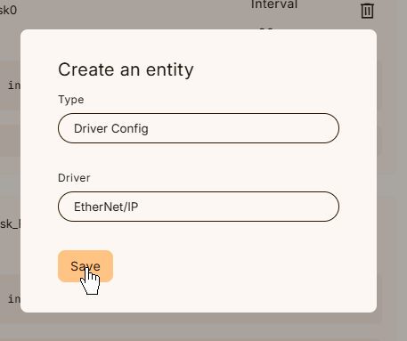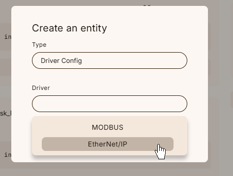 Next, configure EtherNet/IP from the Driver drop-down list.