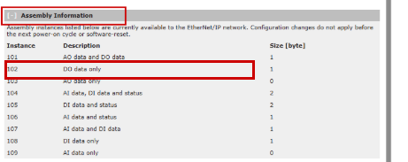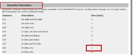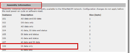Earlier, the WAGO 750-363 Web Server indicated that Instance108 contains only DI data.