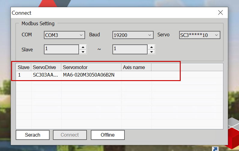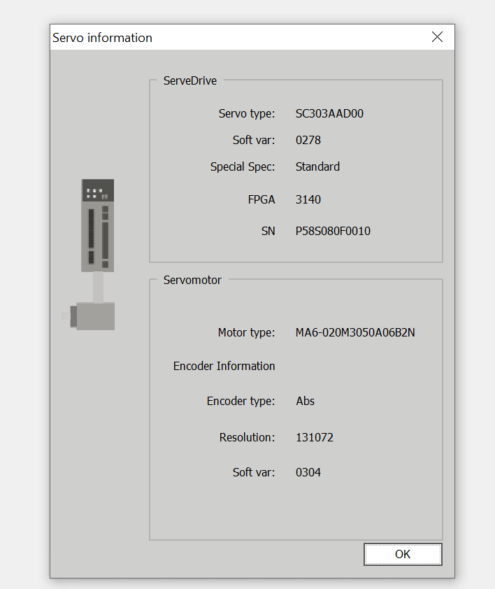 Done!As shown in the figure below, you can check information such as the model and resolution of the SERVO DRIVE and motor.