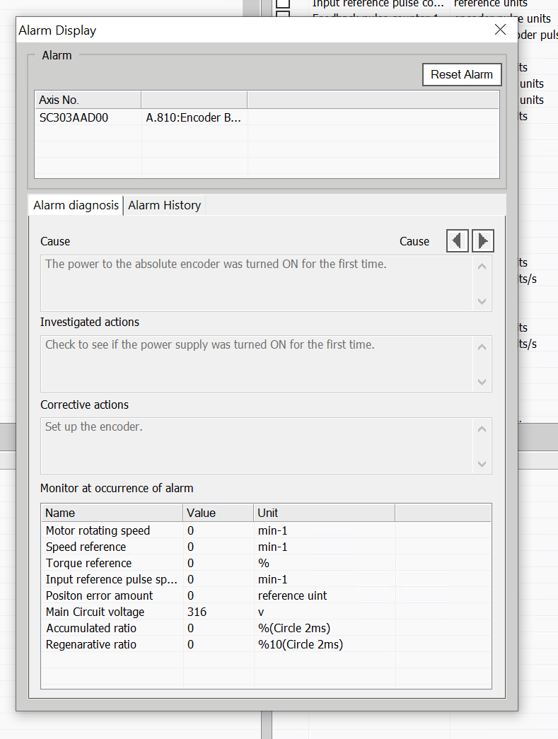 Click Servo→Alarm Display.