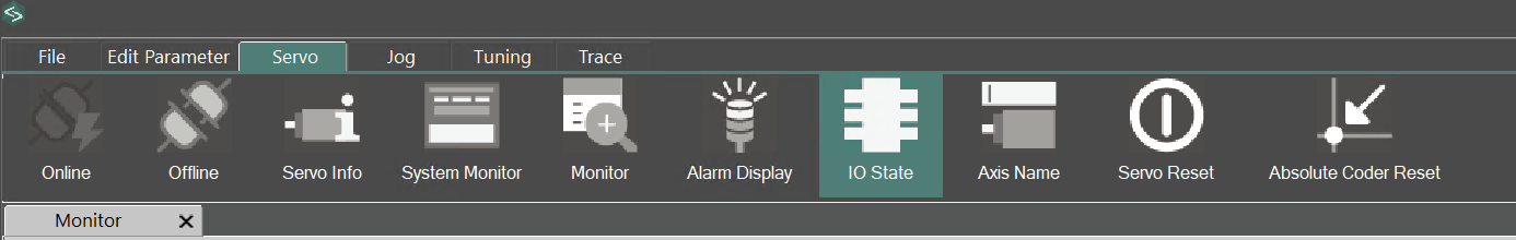 Click Servo→IO State to check the current input/output status of the SERVO DRIVE’s IO terminals.