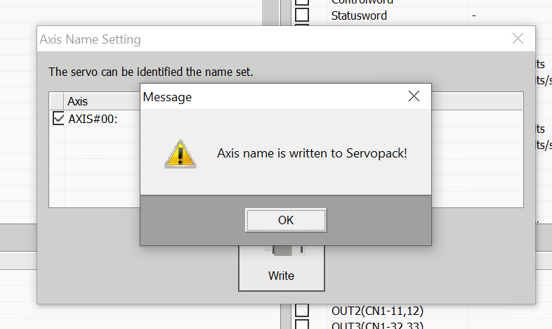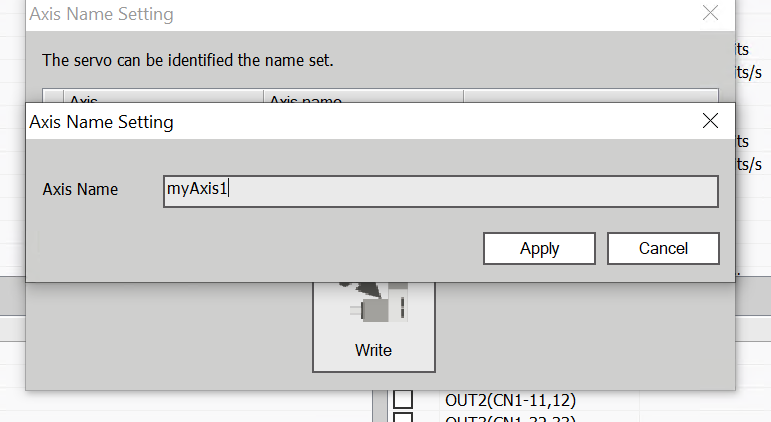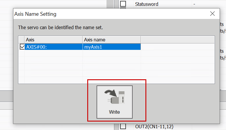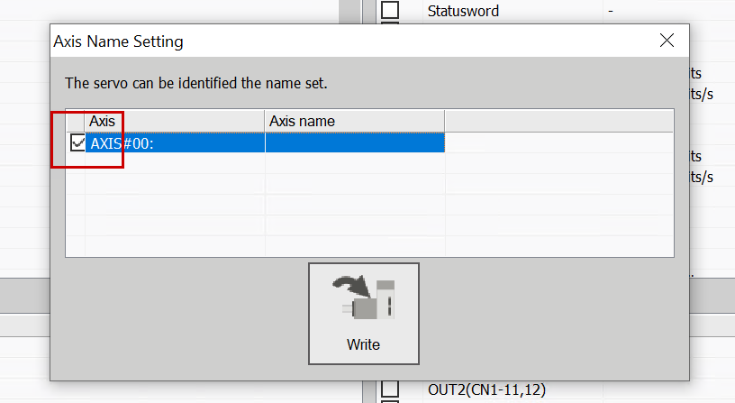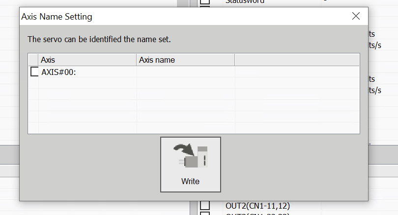 Finally, click the Write button to write the axis name to the servo.