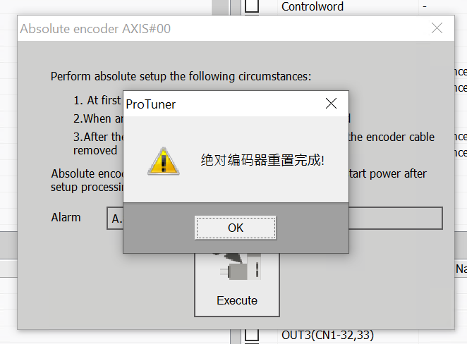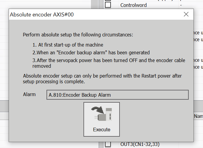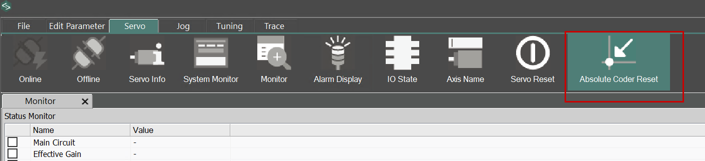 The initial shipment of the SERVO requires an absolute encoder reset operation. Click Servo→Absolute Encoder Reset.