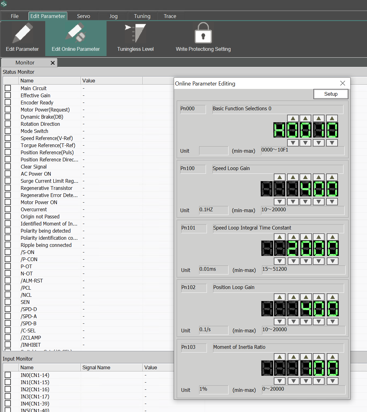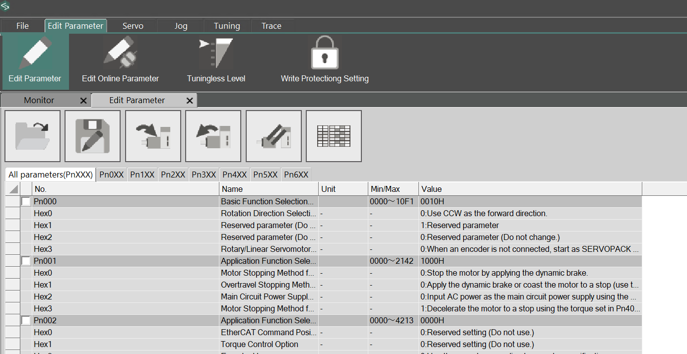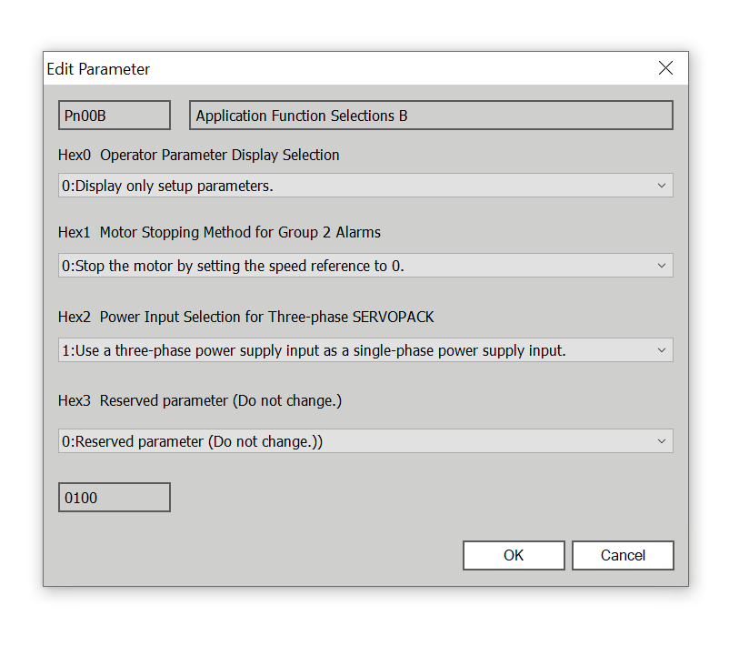 I’m testing the Servo Drive at home, so I only have single-phase power available. Click Pn00B→Hex1.