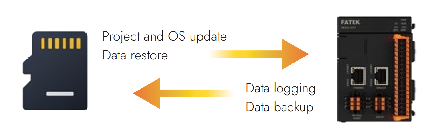 Recorded data can be saved directly to a microSD card. Project updates, OS updates, and data backup/restore operations can also be performed via the microSD card. This allows users to complete data recording, project loading, and system maintenance without a computer.