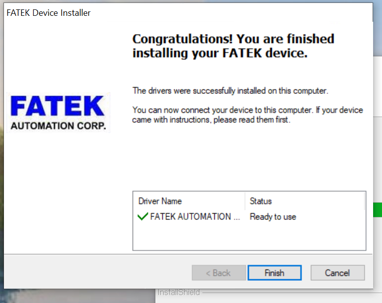 Next, the USB driver installation screen for connecting to the FATEK PLC appears. Click Next to proceed.