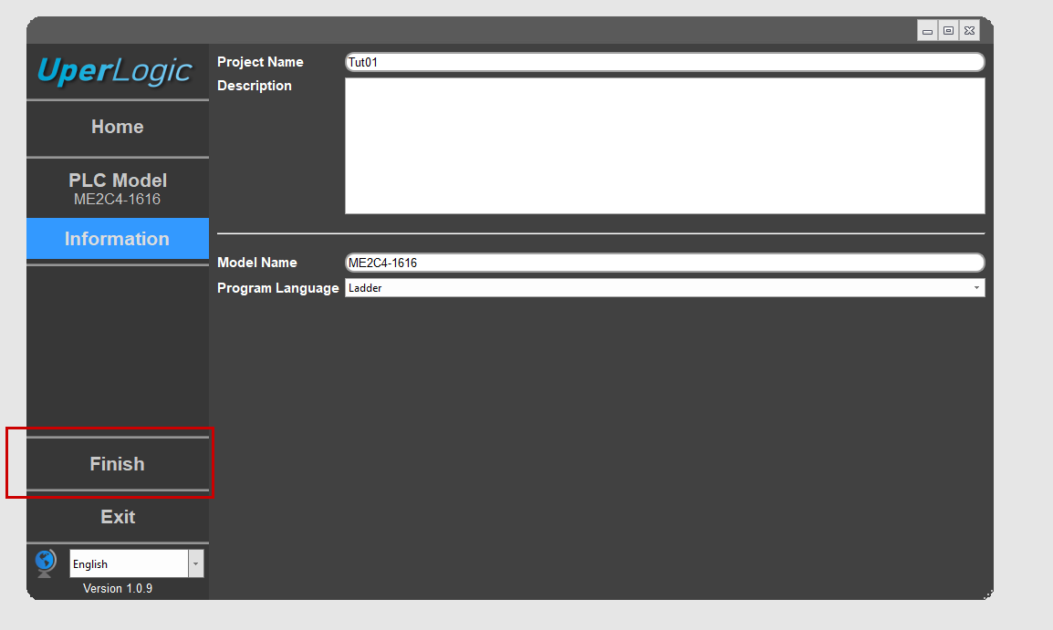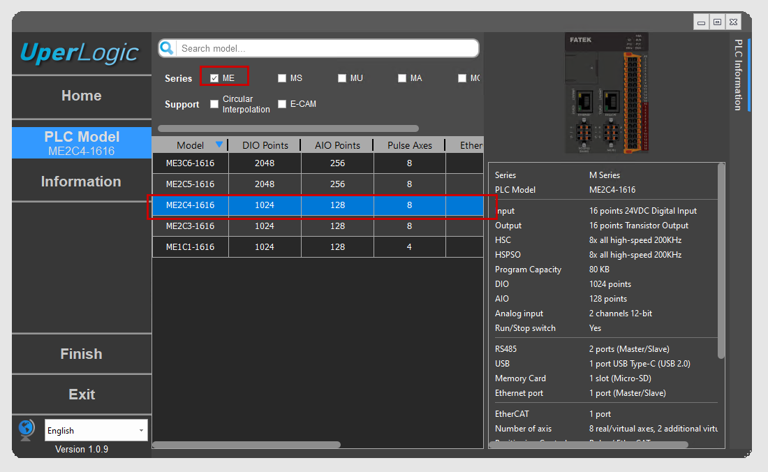 Select the PLC model to use for the project. For this article, we will use the ME3C6-1616.