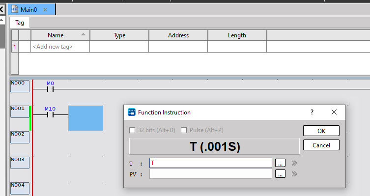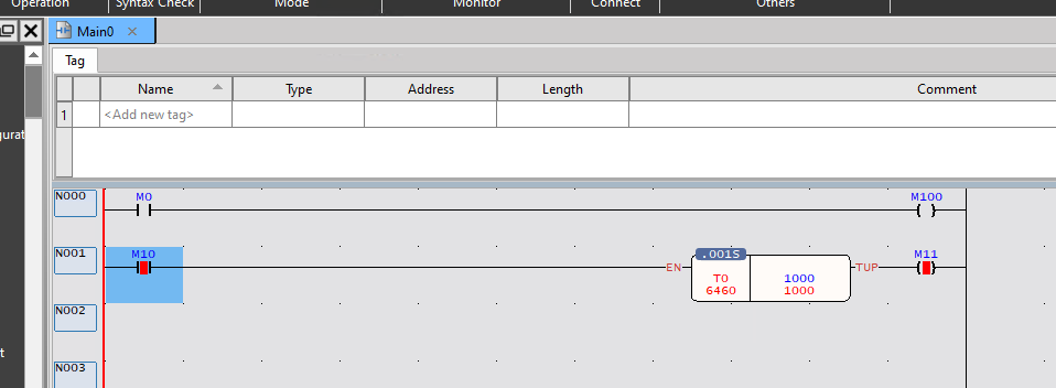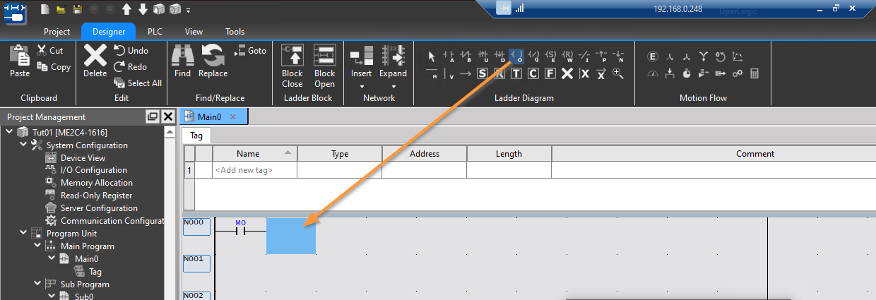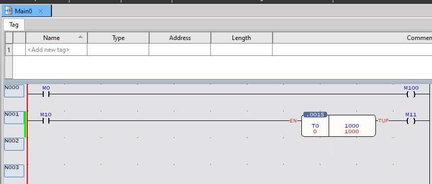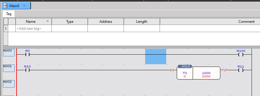 Select the coil from the Ladder Diagram and drop it into N0000.