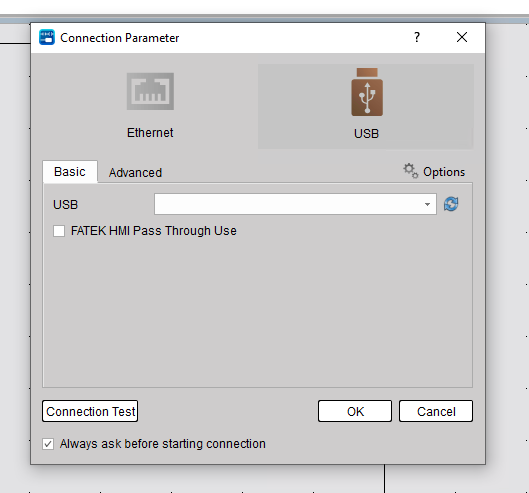 Next, click the Connection Test button in the lower-left corner to perform a communication test.
