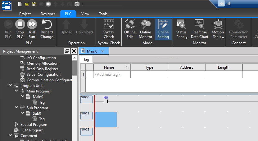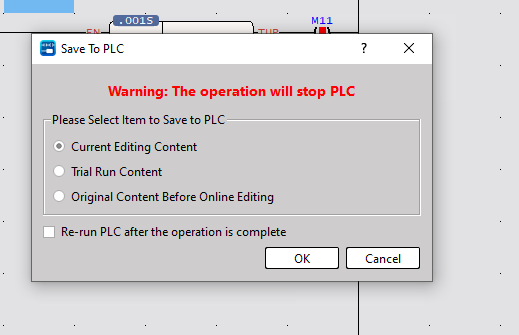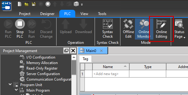 Unlike domestic PLCs, when editing online, changes to projects or programs are not immediately written to the PLC. To activate the current changes, you must write them to the PLC’s execution section via Trial Run.