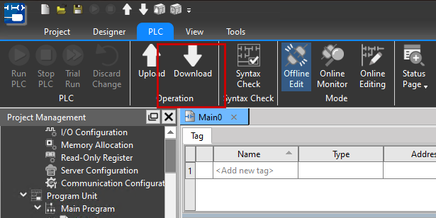 Done! The connection between the PC and PLC is working properly. Now click OK to download the project to the PLC.