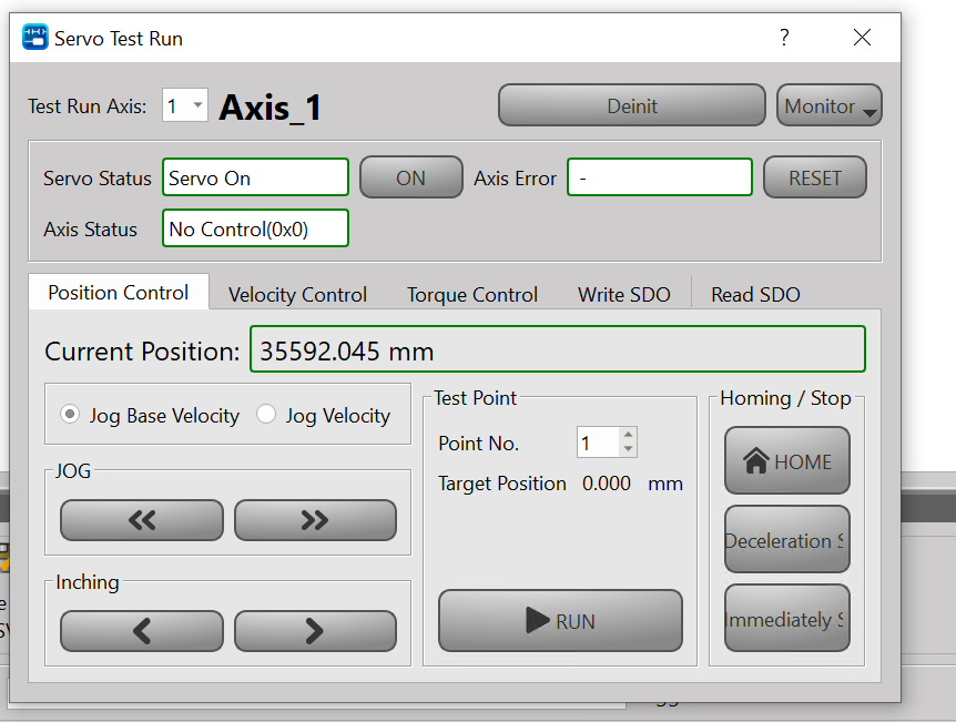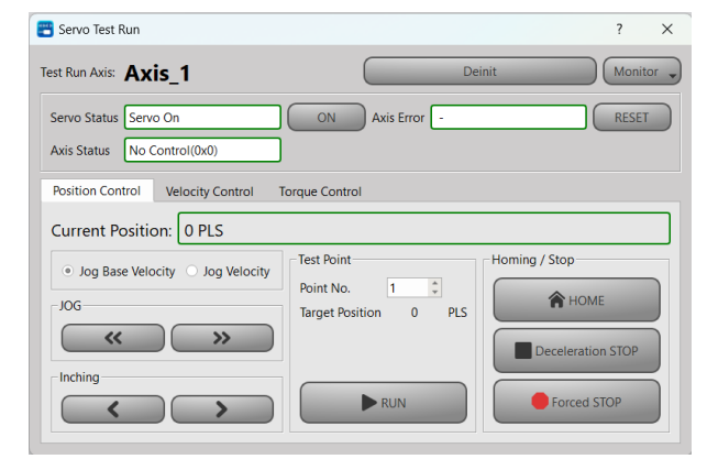 Next, click the Start button to monitor the current position and speed of Axis 1.