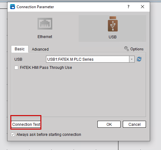 Next, click the Connection Test button in the lower-left corner to perform a communication test.