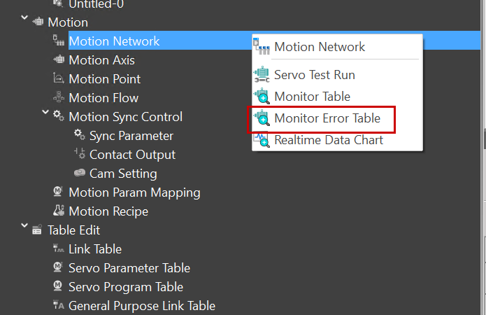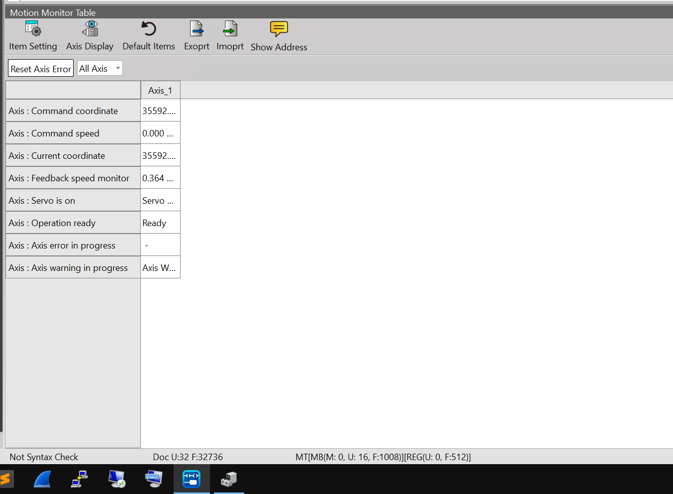 Motion Table allows you to check the status of each axis. Click Motion → Motion Network → Motion Network.