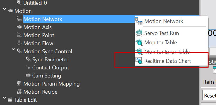 Next, click Motion → Motion Network → Realtime Data Chart.