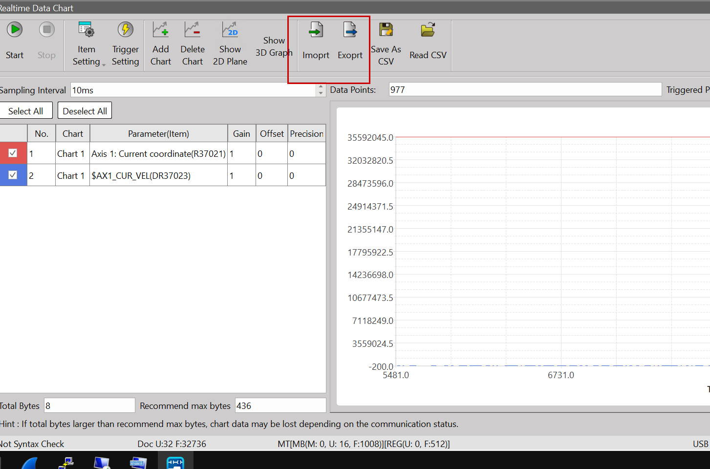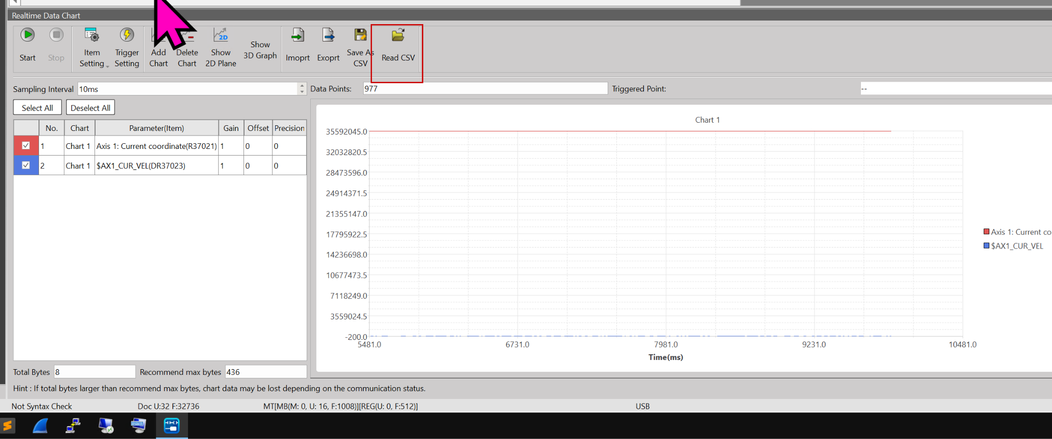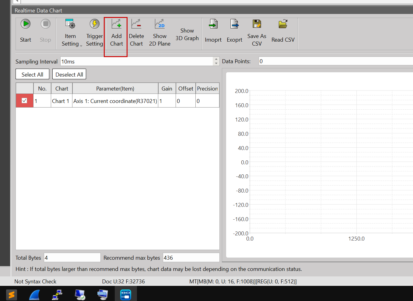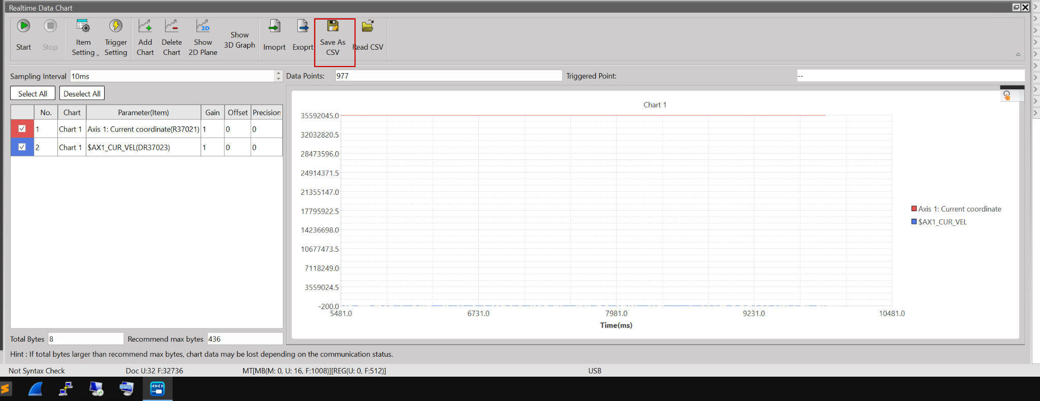 The Realtime Data Chart is a tool for real-time visualization of internal motion axis data over time.