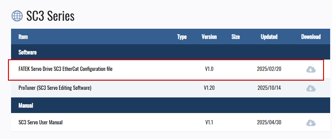 Download the ESI file for the FATEK SC3 series servo used in this article from the link below.