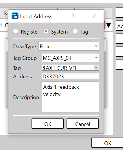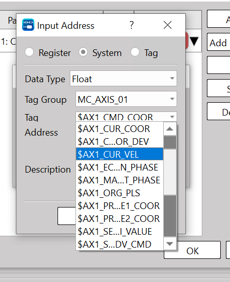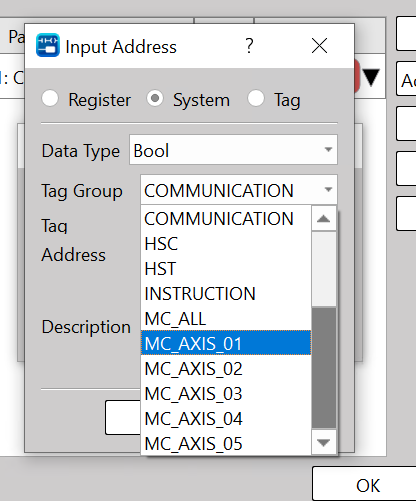 This time, since we want to monitor the data for Axis 1, click Group→MC_AXIS_01.
