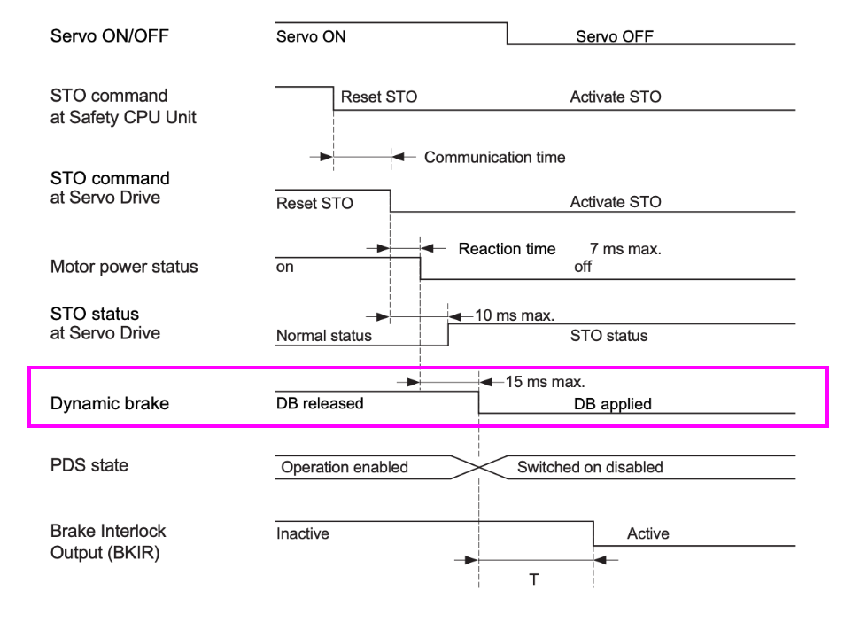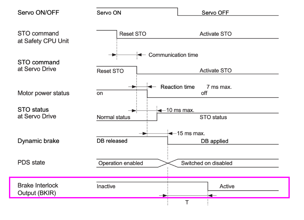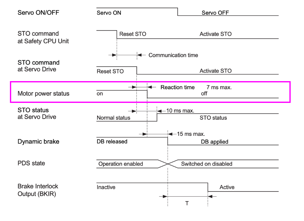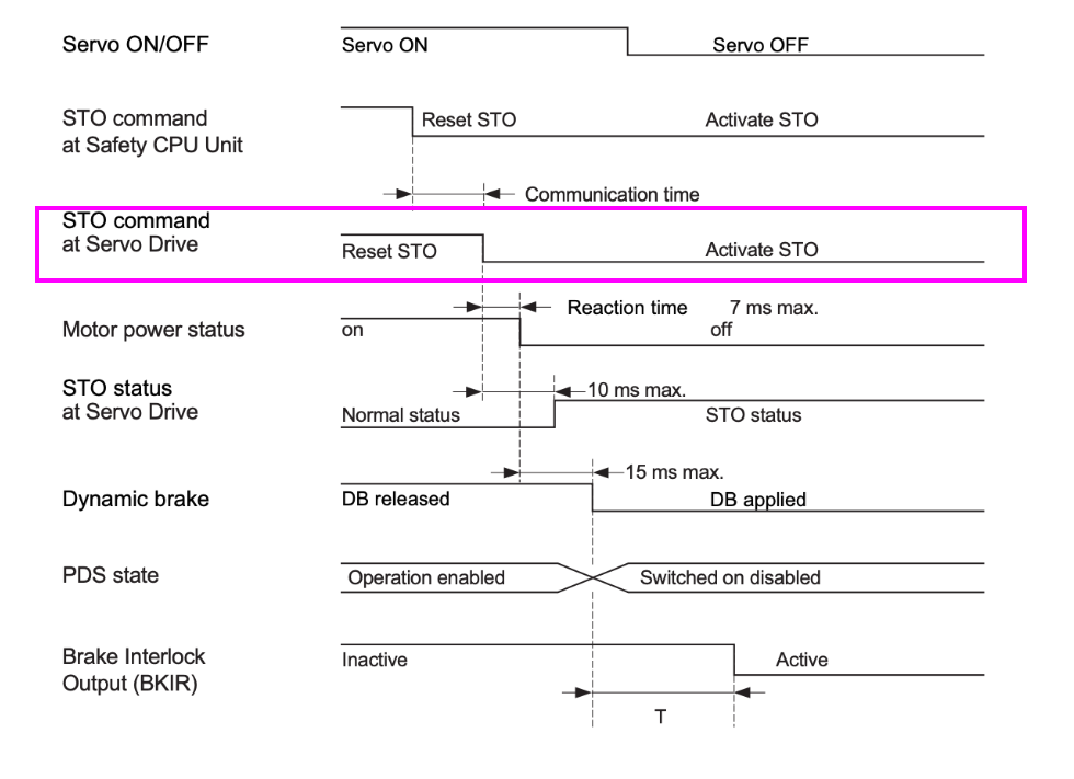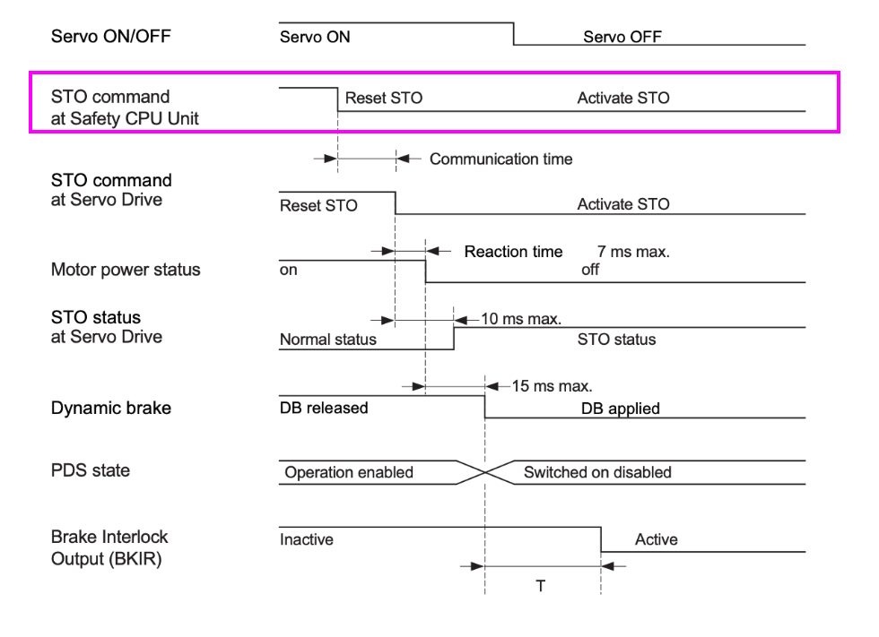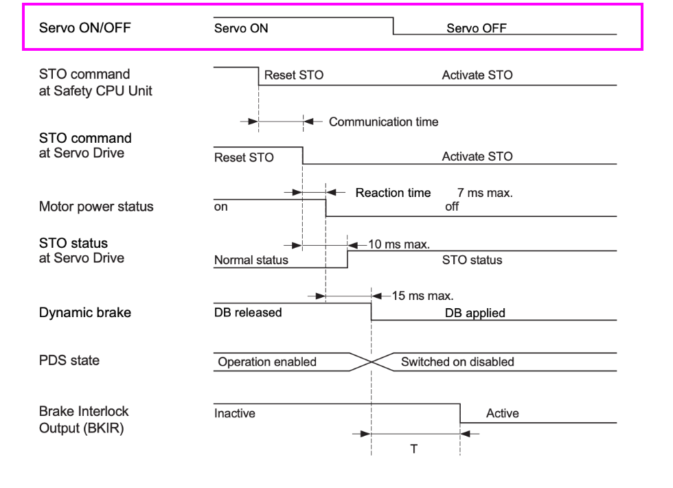 STO (Safe Torque OFF) is a function that safely stops torque output by interrupting the motor’s current supply. This function is executed by a signal from the safety controller, causing the servo to transition to a “safe state.”