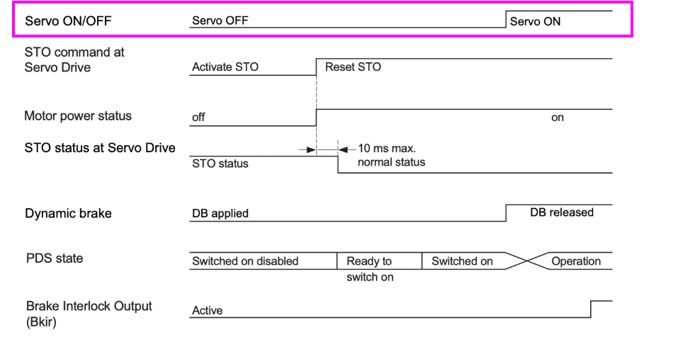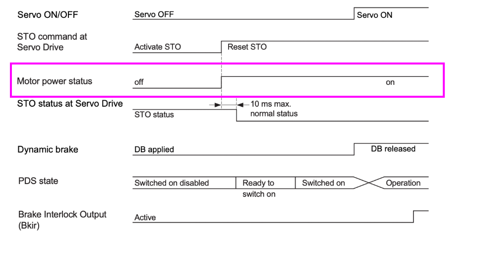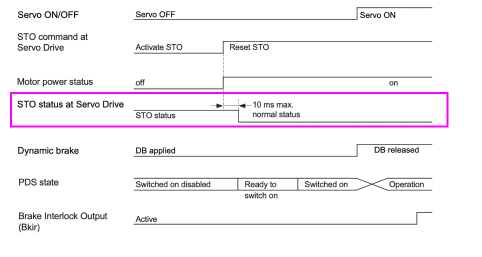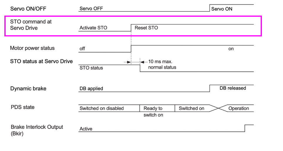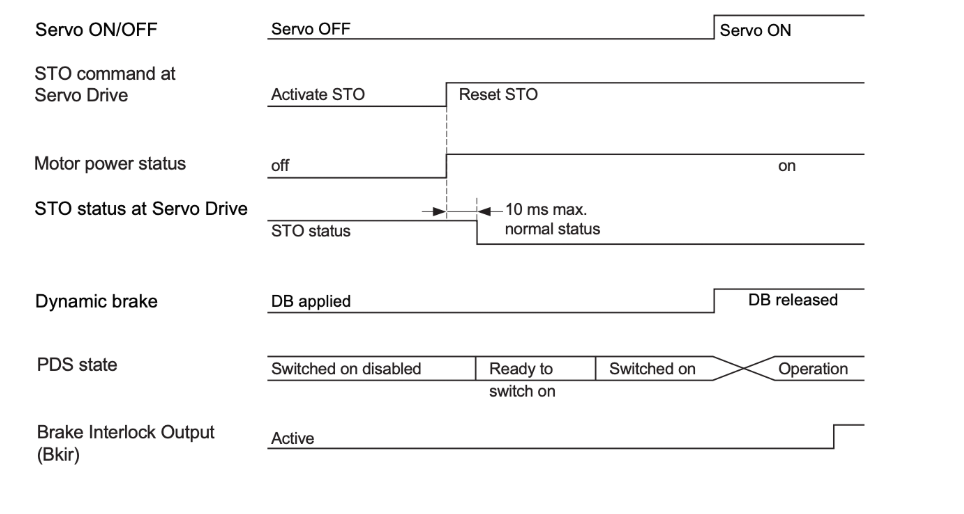 When STO becomes active, the servo turns OFF the “READY” output and enters a safe state.
