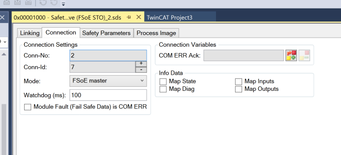 There are no particular settings to configure in the Safety Parameters Tab for the OMRON FSoE connection.