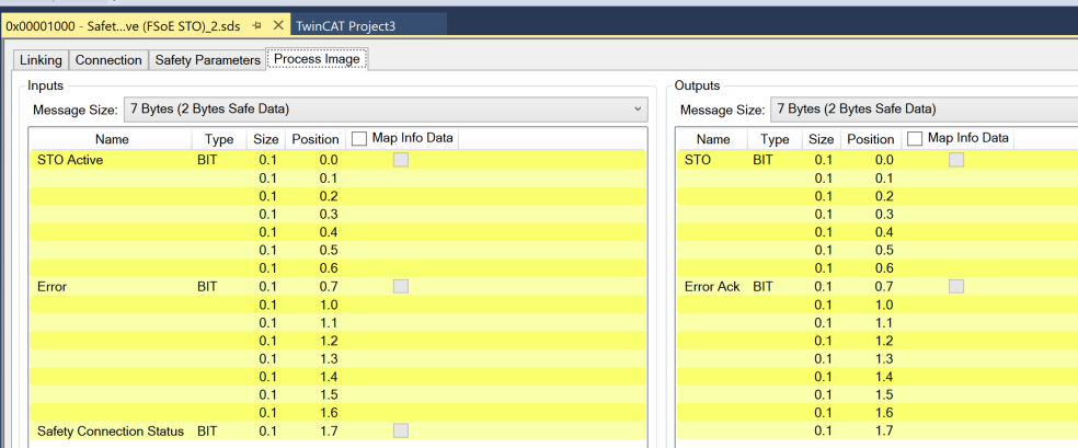 In Process Image, you can view a list of safety inputs and outputs that exchange data via FSoE.