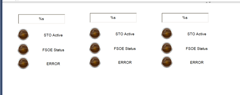 Create a screen to monitor STO status on the HMI. Each column corresponds to one axis (Axis1 to Axis3), showing respectively: