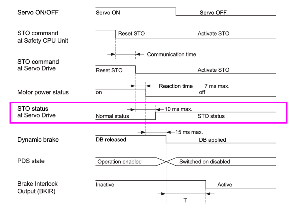 STO (Safe Torque OFF) is a function that safely stops torque output by interrupting the motor’s current supply. This function is executed by a signal from the safety controller, causing the servo to transition to a “safe state.”