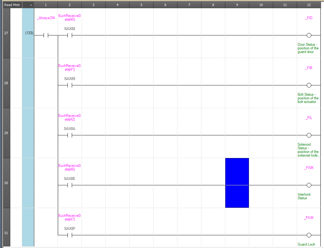 Rung27 retrieves the door status of the Euchner MGB-L2B-EIA-R-136508.