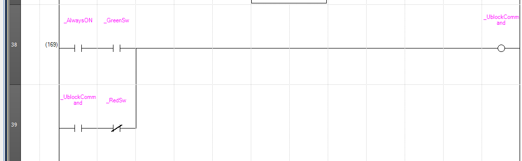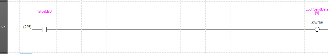Rung57 outputs the blue pushbutton lamp from Euchner’s MGB-L2B-EIA-R-136508.