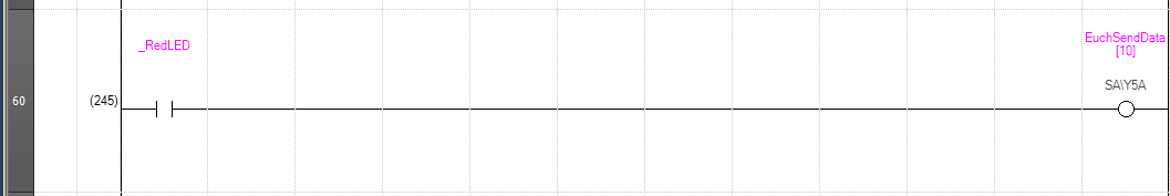 Rung60 outputs the red pushbutton lamp for the Euchner MGB-L2B-EIA-R-136508.