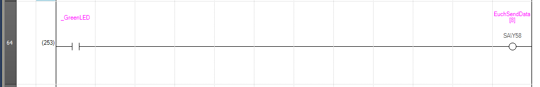 Rung64 outputs the green pushbutton lamp for the Euchner MGB-L2B-EIA-R-136508.