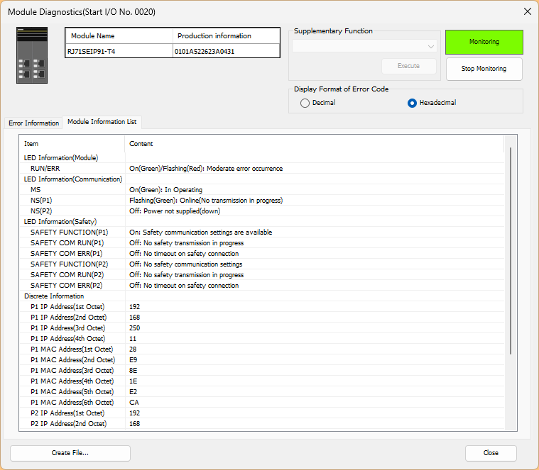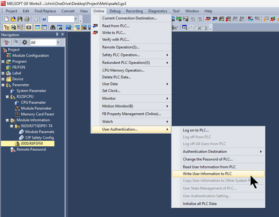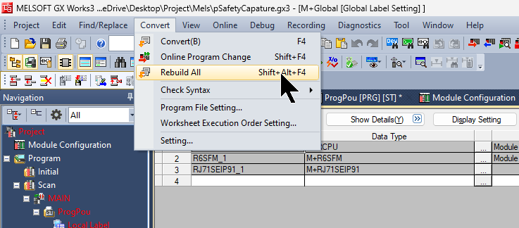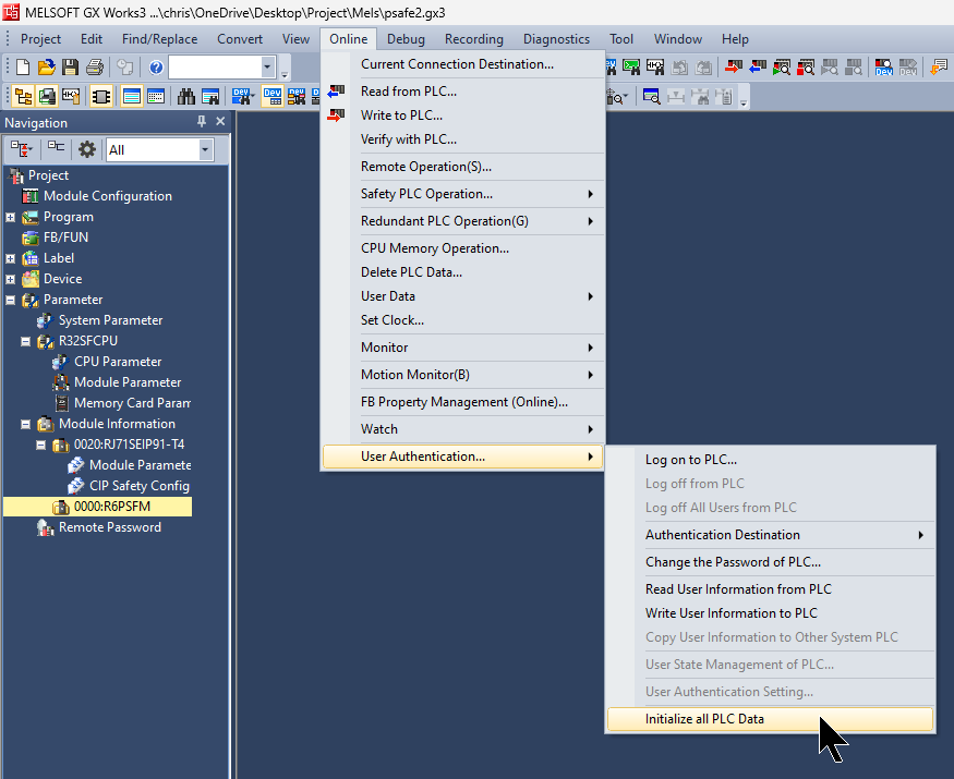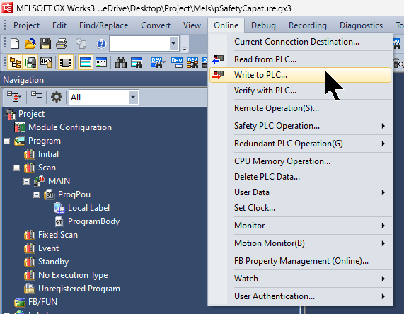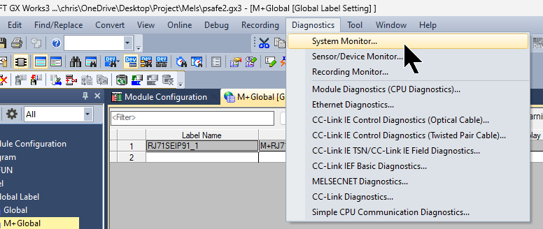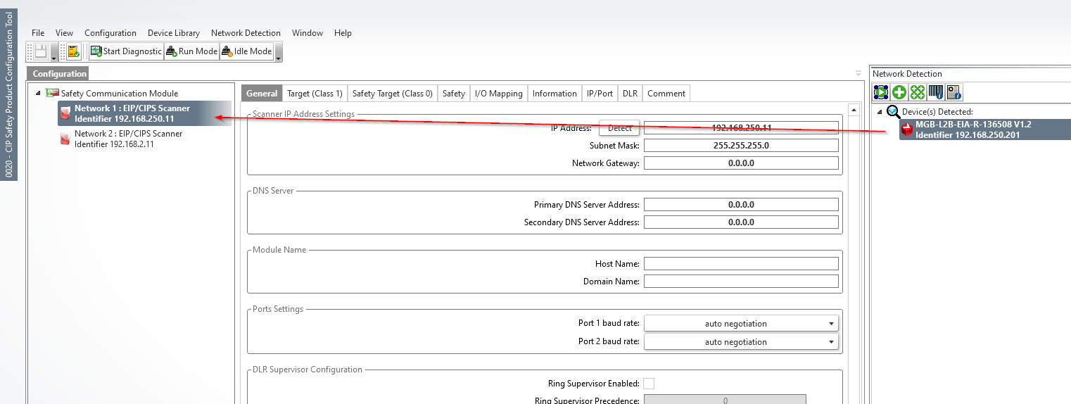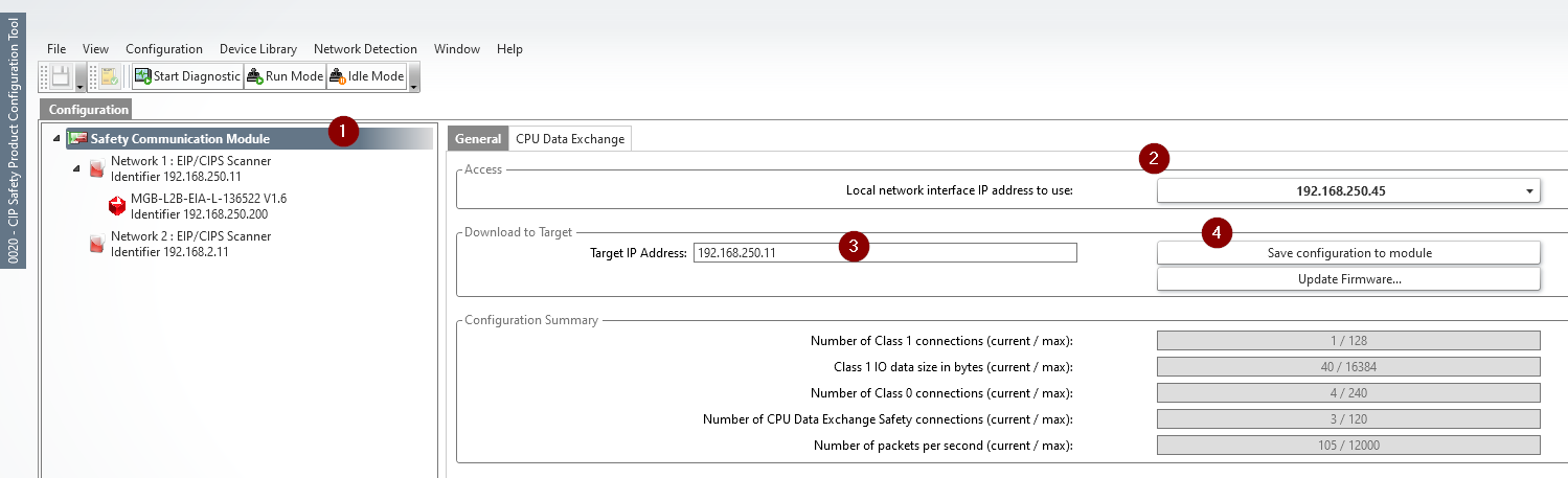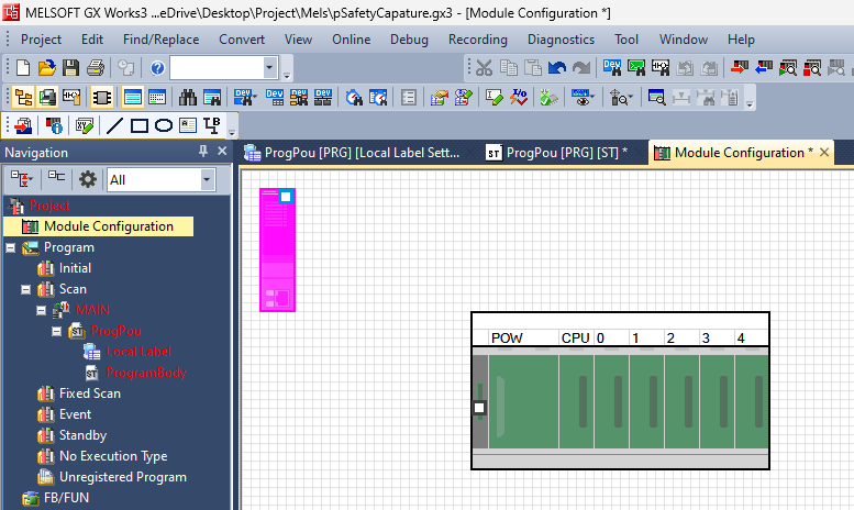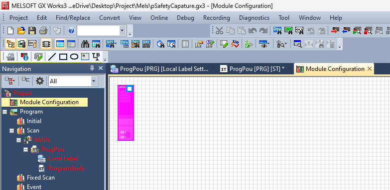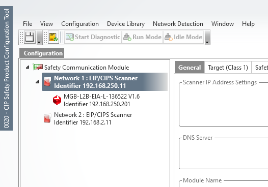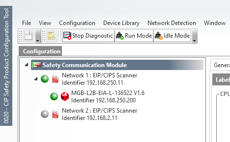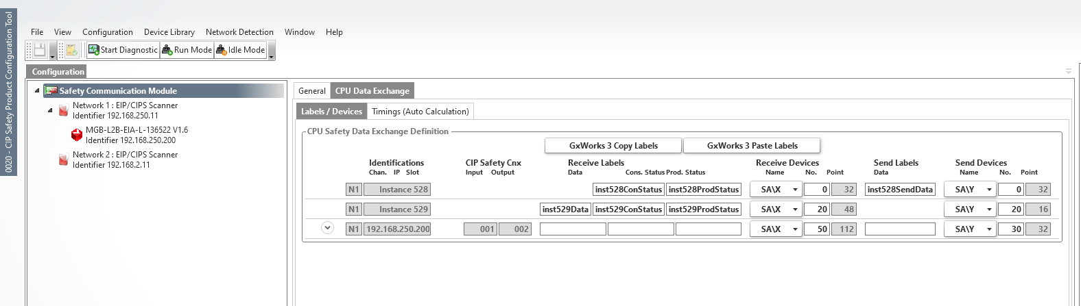 You can see that communication has been established with the CIP Safety Configuration tool in Mitsubishi GXWorks3.