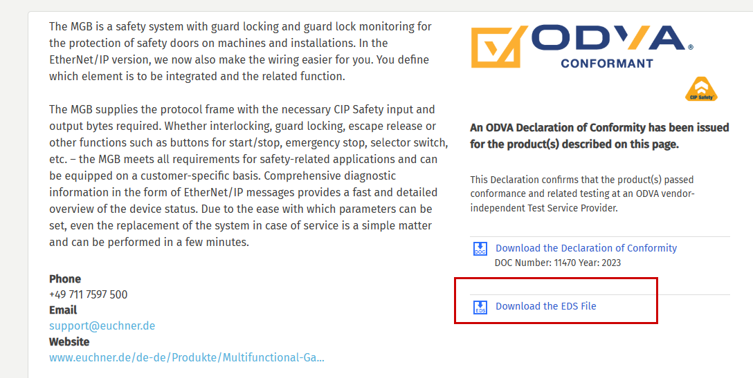 This is the CIP Safety door lock used in this article: the Euchner MGB-L2B-EIA-R-136508 (Order No. 136508).