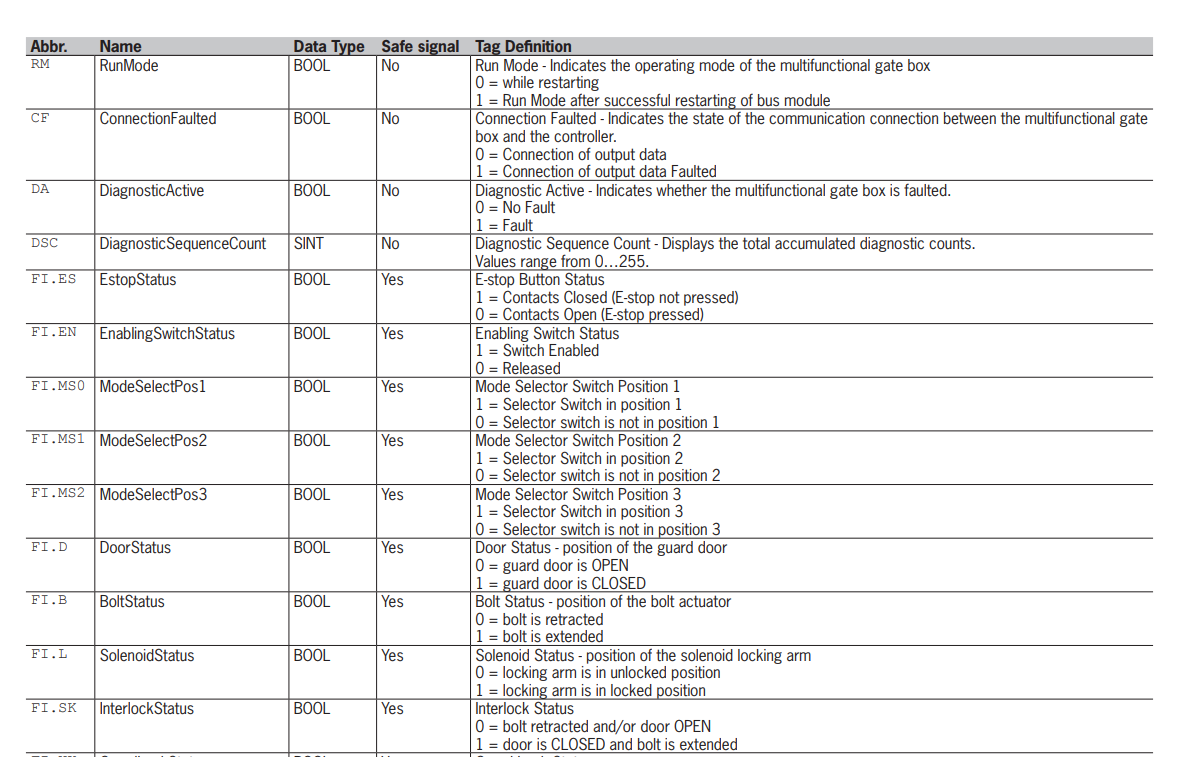 In addition, each MGB module occupies a certain number of data bytes within the control system’s input/output range, and the following data types are distinguished: