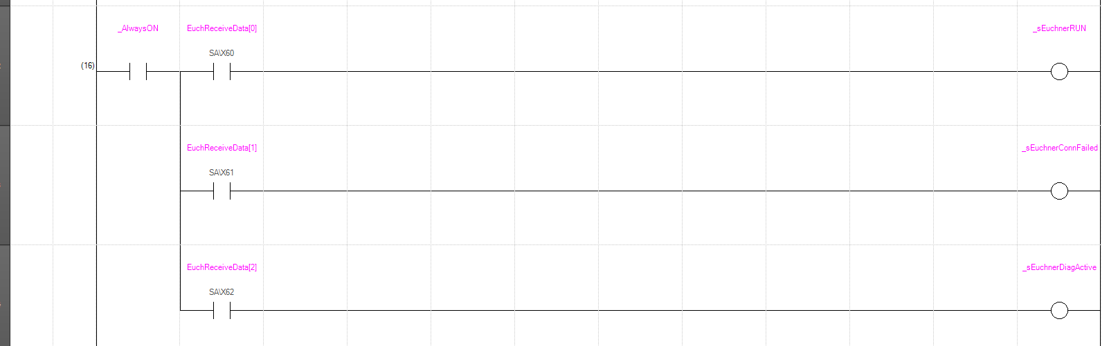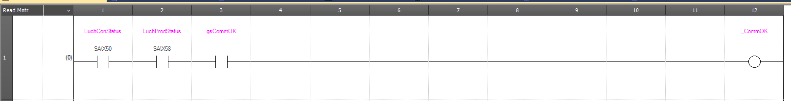 Rung1 verifies communication between Mitsubishi’s RJ71SEIP91-T4 and Euchner’s MGB-L2B-EIA-R-136508.