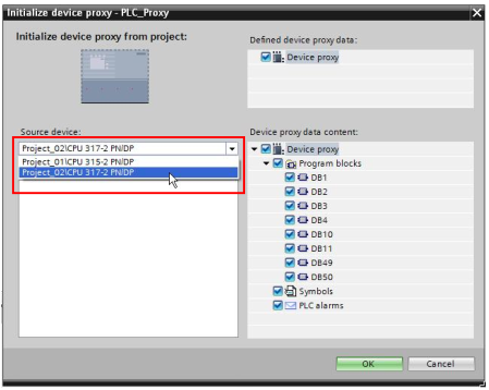 もしOKならプロジェクト内のPLCを選べるようになり、それぞれのCPUを選んだらその中にあるDB、SymbolsがImportするかしないか選択できます。設定終わったらOK。