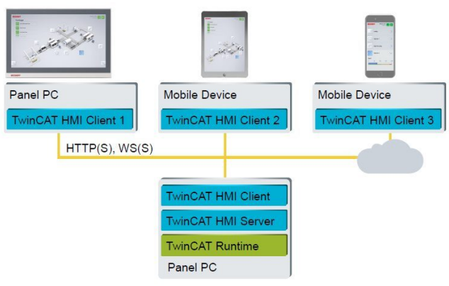TwinCAT HMIはClient/Server思想で動いています。つまりClient側になにも特別なソフトインストール必要なく、必要なのはWeb Browserだけです。(HTTP/HTTPS Protocol)