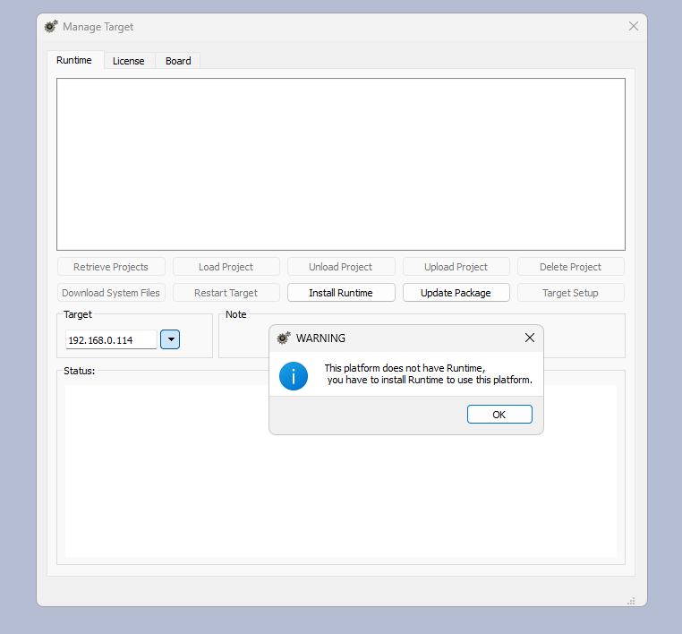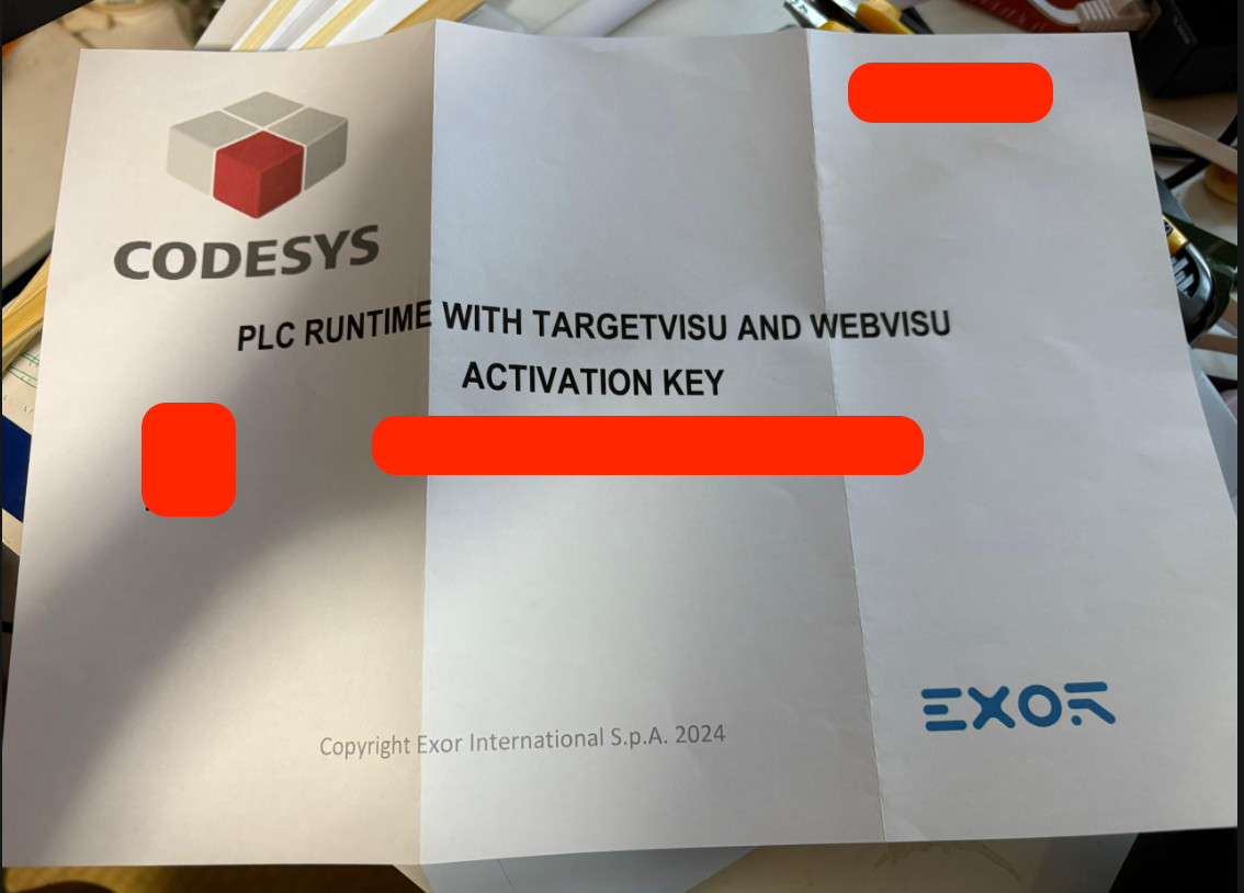 次はCodesysのライセンスをActivateします。もしTargetとWebVISUのライセンス付きの場合はCodesysの紙に”PLC RUNTIME WITH TARGET AND WEBVISU”と書いています。