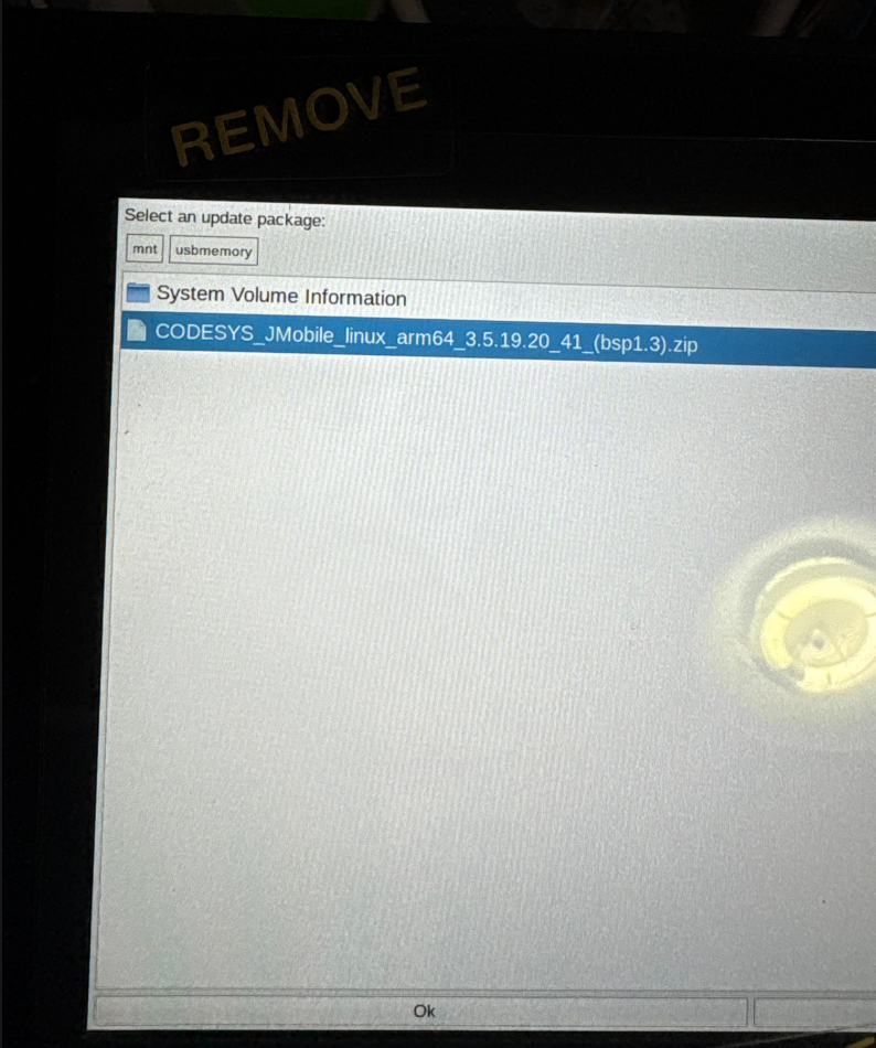 次はEXOR者からCodesysのSETUP FILEをもらい、USBにそのZIP FILEを保存します。そしてHMIにUSBを挿し、再起動します。