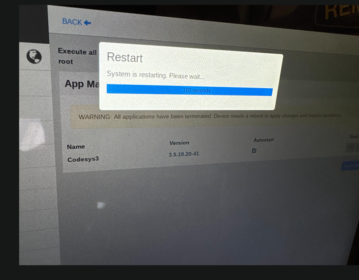 DONE!Codesysの文字が表示され、”Restart the HMI device to make the new license available”のメッセージが表示され、パネルを再起動しましょう。