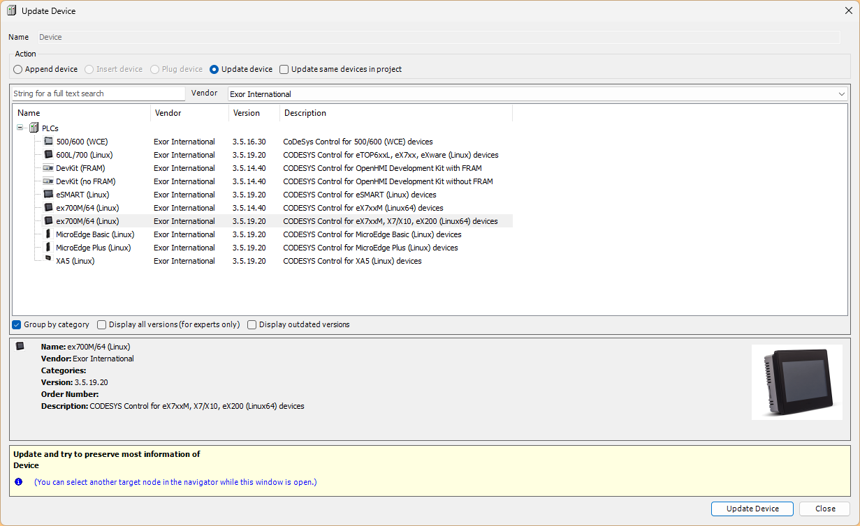 今回の記事ではEXOR社のHMIからCodesysのTargetVISUとWebVISUを使用する場合のセットアップ手順をメモします。