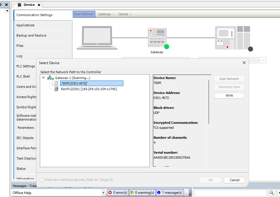 CodesysのScan network機能からもEXORのHMIを検索できました。