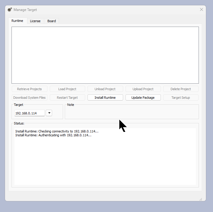 最初にJMOBILEを起動し、Manage Target→Install RunimeをクリックしRuntimeをインストールします。