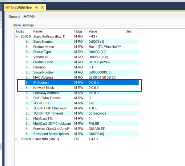 最後はBeckhoff側のEthernet/IP設定を確認しましょう。