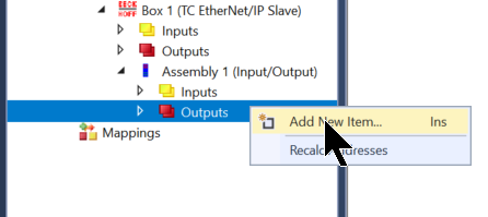 次は先程追加したAssembly Inputs→右クリック→Add New Itemします。